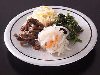 素材ごとに最適な下処理と味付けを施した、焼肉のためのナムル四種。