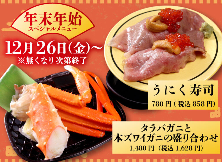 12/26(金)~年末年始限定メニュー!「うにく寿司」「タラバガニと本ズワイガニ…