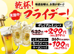 毎週金曜日はお酒が安い♪焼肉とお酒で盛り上がっちゃいましょう!!