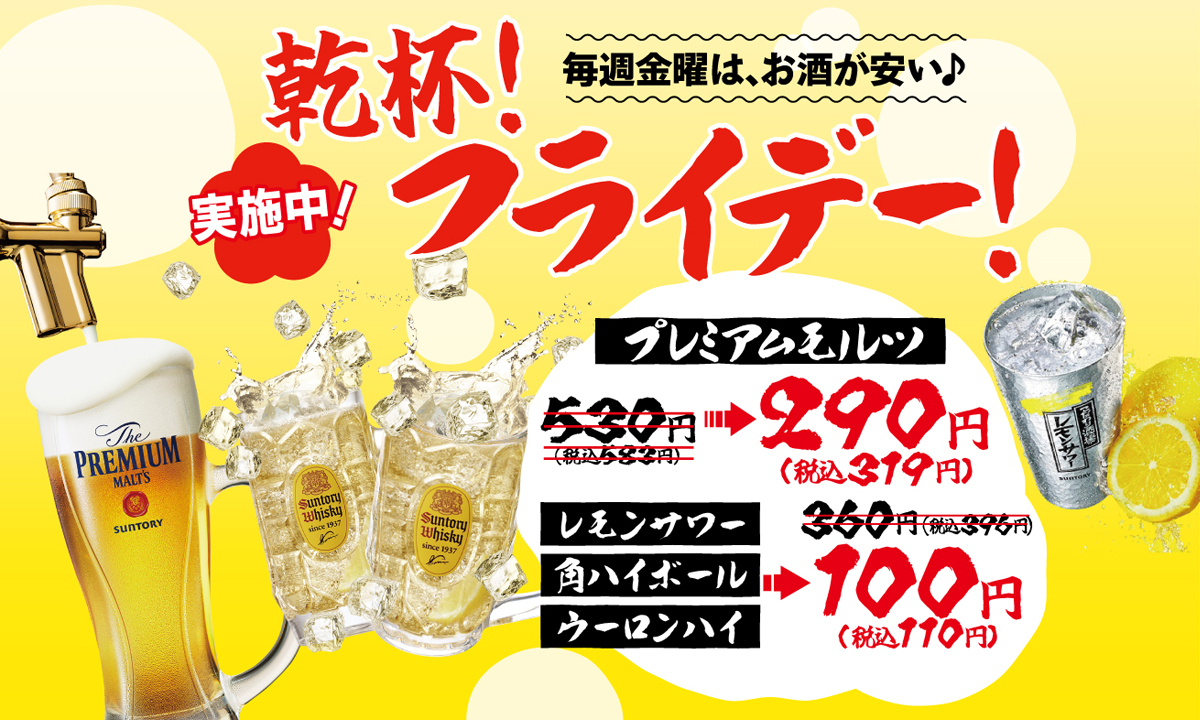 毎週金曜日はお酒が安い♪焼肉とお酒で盛り上がっちゃいましょう!!