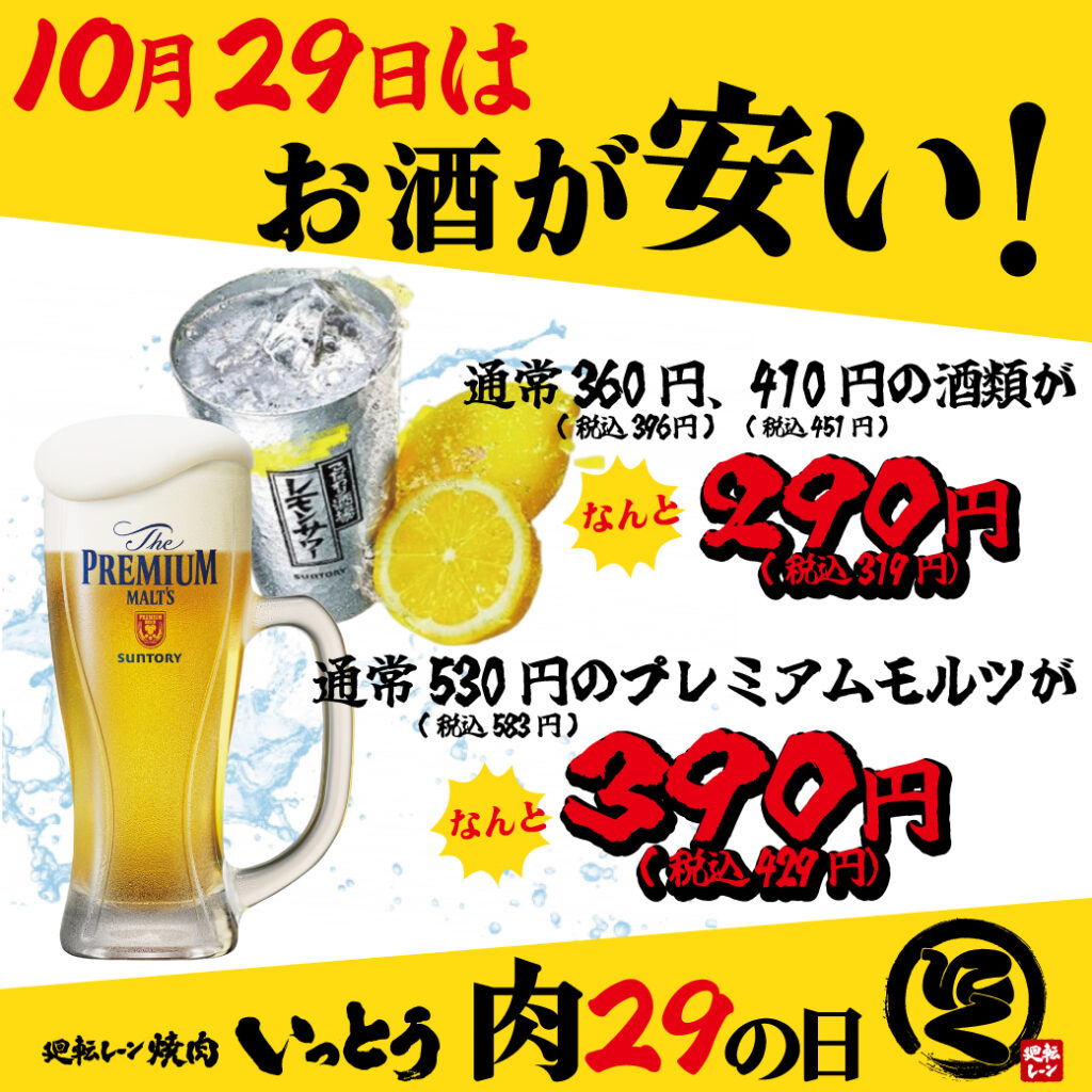10/29(水)1日限り!いっとう肉の日はお酒が安い!