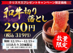 【クリスマスキャンペーン】12/19(金)~12/25(木)なんと和牛切り落とし…